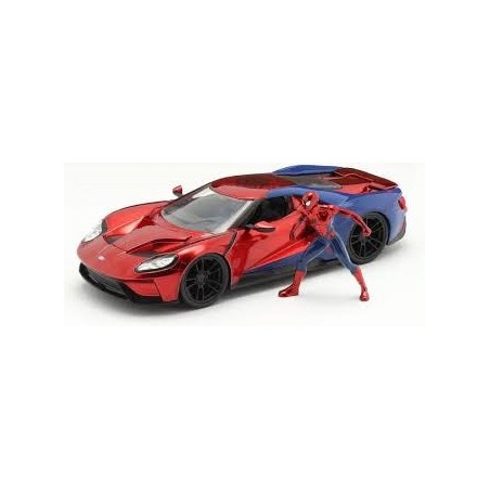 AUTO IN METALLOFORD GT 2017 SPIDERMAN SCALA 1 24 CON PERSONAGGIO JADA