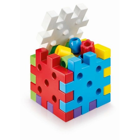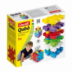 Qubo è un gioco di costruzioni per i più piccoli formato da grandi piastre da incastrare o sovrapporre e da grandi chiodi in 4 forme da impilare in verticale come colonne o da infilare nei buchi