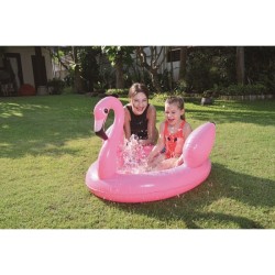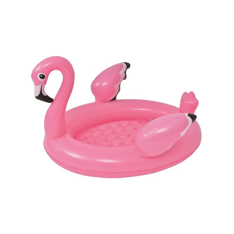 Piscinetta Flamingo Jilong con fondo gonfiabile a forma di Fenicottero di colore rosa Realizzata in PVC laminato multistrato misura 108x95cm e la capacità della piscina all 80 è di 31 litri kit pe