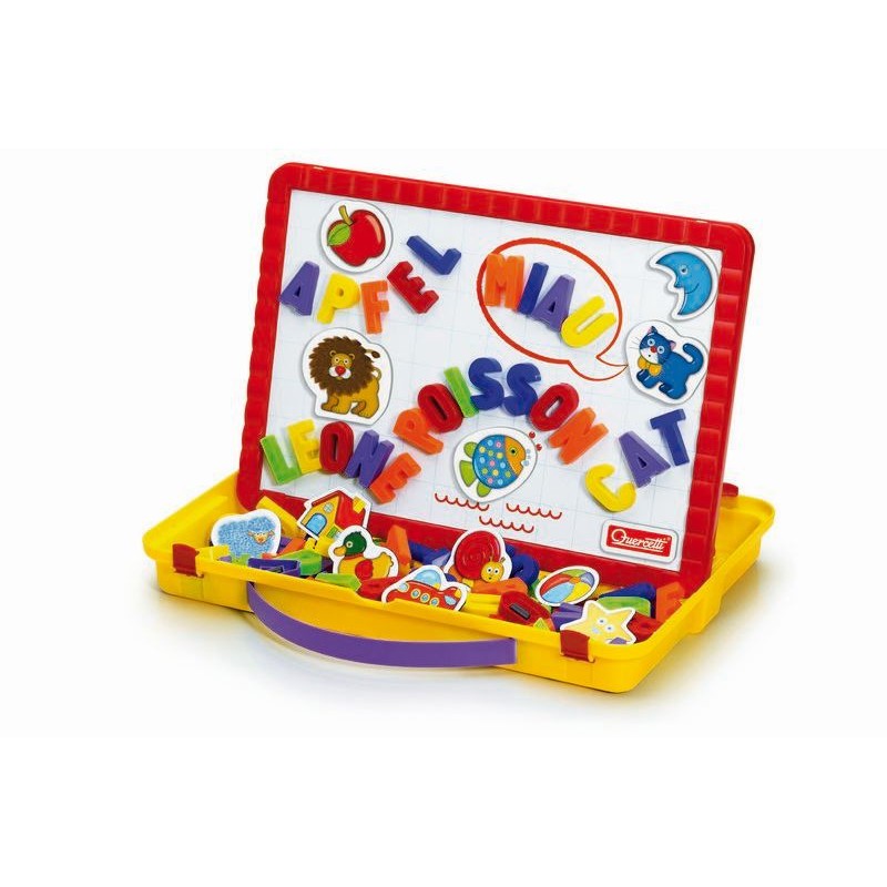Classica lavagna magnetica con lettere e tesserine magnetiche che stimolano correttamente la composizione delle prime parole