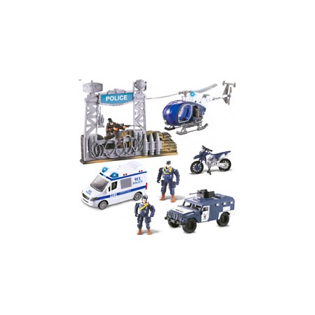 Forti Eroi Playset Police Playset Stazione di Polizia completo di 1 personaggio con accessori moto da cross moto ad acqua carro armato furgone ed elicottero Playset con Luci e Suoni ideale dai 3 anni