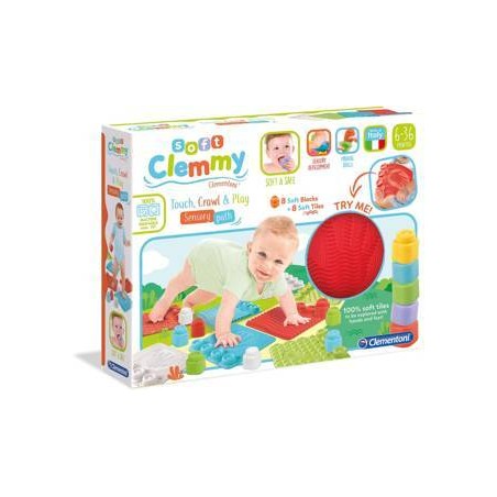 Un percorso tattile da comporre assemblando le maxi tessere in morbida gomma sicura e atossica pensato per creare un avvolgente esperienza sensoriale per i più piccoli La superficie delle tessere presenta differenti texture in rilievo per stimolare la percezione tattile del bambino Grazie alle sagome dei Clemmy presenti sulle tessere il bambino potrà divertirsi ad incastrare i mattoncini e creare tante torri Stimola la percezione tattile la capacità di osservazione e la manualità Ideale a partire dai 6 mesi Made in Italy