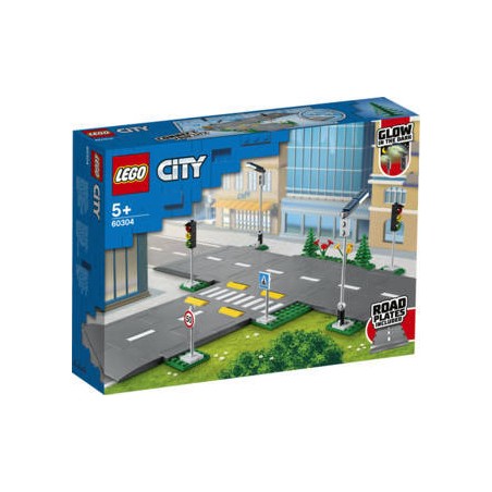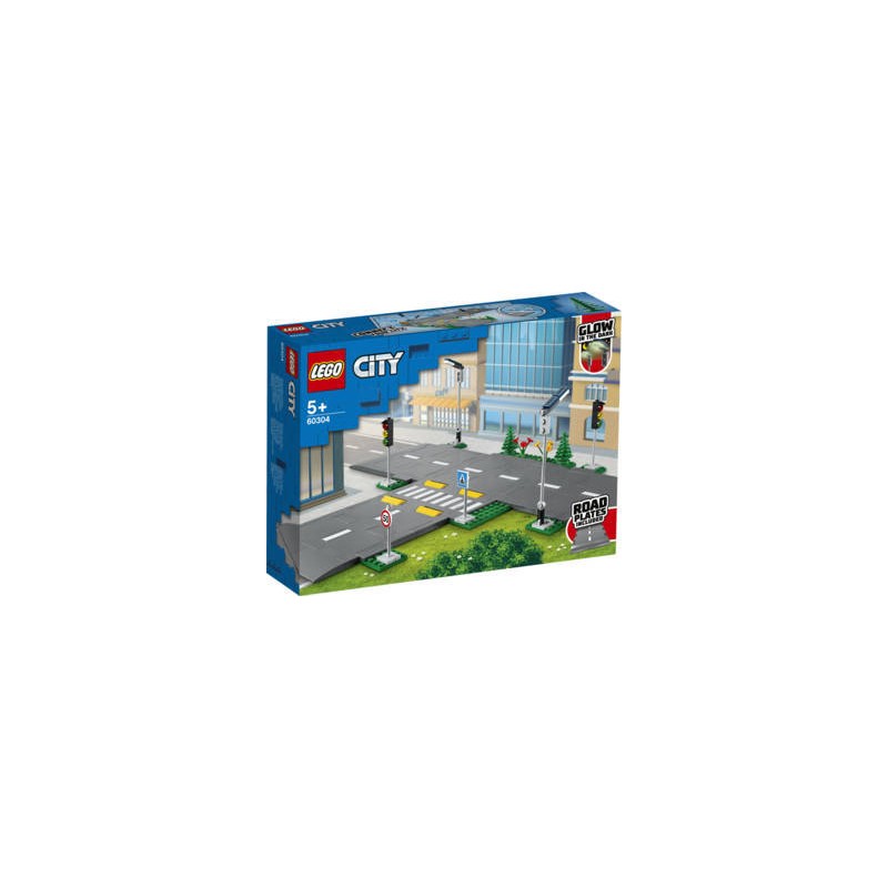 Aggiungi un look realistico alle tue creazioni LEGO City e connettiti ad altri set per espandere la tua città con queste fantastiche Piattaforme stradali LEGO City Questo bellissimo set è dotato di lampioni che si illuminano al buio semafori cartelli stradali segnaletica orizzontale dossi strisce pedonali alberi e vegetazione LEGO City Piattaforme stradali 60304