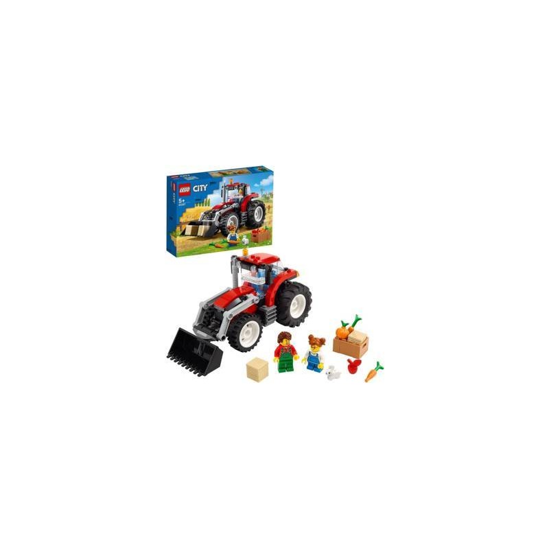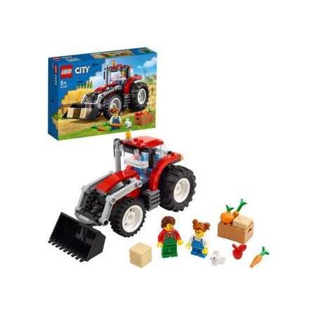 Sali sul divertente trattore LEGO City e guida verso la campagna Guidare su terreni accidentati non è un problema grazie alle enormi ruote posteriori del trattore Carica le balle di fieno e una cassa di zucca mela e carote nell escavatore del trattore Quindi sollevali in aria e guidali verso il contadino e sua figlia un coniglio affamato sta aspettando il suo cibo