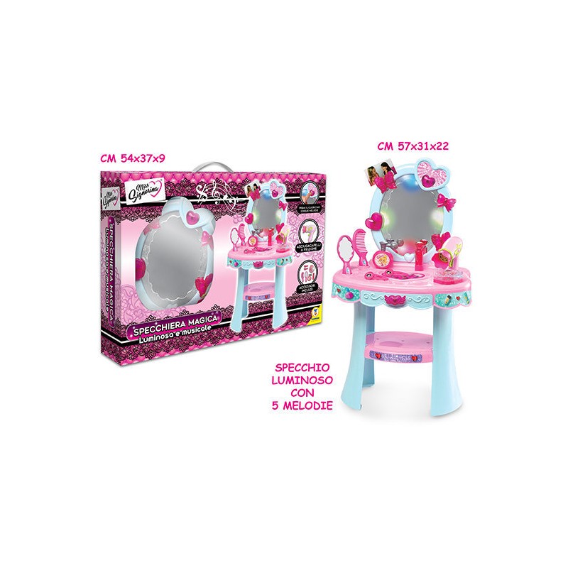 Specchiera Magica Suona e si illumina per Magia H cm 57 Asciugacapelli a frizione cassettino portagioie accessori inclusi