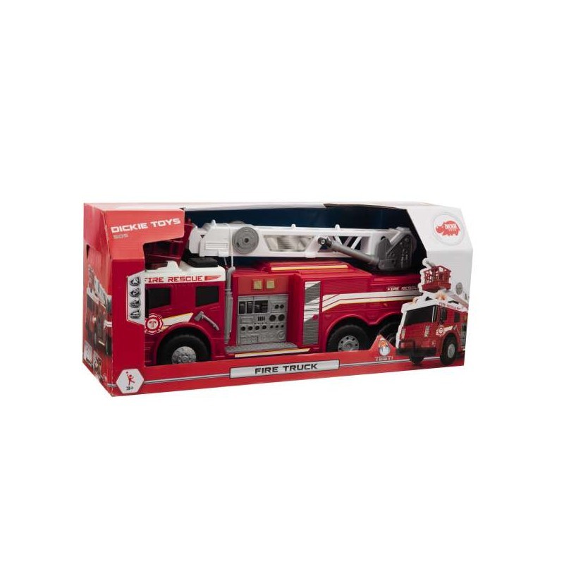 Partecipa a emozionanti operazioni di salvataggio con il nuovo camion dei pompieri di Dickie Toys E' un veicolo con dettagli riprodotti con cura che sicuramente delizierà un piccolo vigile del fuoco Ha una dimensione davvero grande fino a 53 cm La più grande attrazione tuttavia sono le funzioni interattive suono e luce Premere uno dei due pulsanti posti al centro del veicolo e sentire il rombo del motore di accensione o la sirena I pulsanti attivano anche segnali luminosi L auto ha diverse parti mobili come una gru movimenti su giù fronte retro e da lato a lato o una porta del bagagliaio Tutto per il divertimento più avvincente