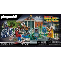 In viaggio nel tempo Back to the Future Parte II Inseguimento sull hoverboard PLAYMOBIL con Marty McFly Dr emmett Doc Brown Griff Tannen e poliziotta per ricreare la scena sull hoverboard