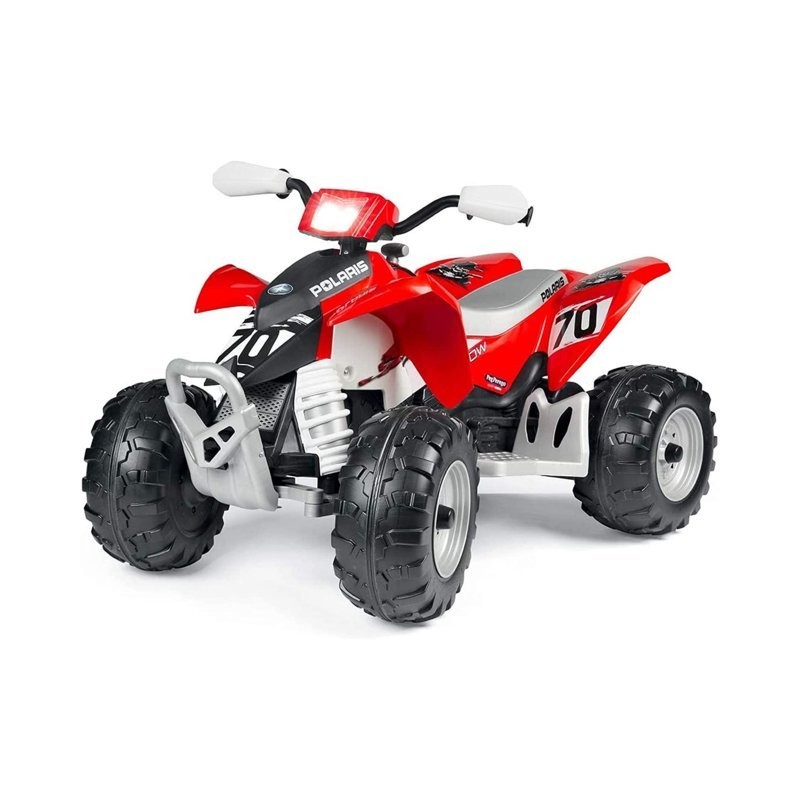 Polaris Outlaw 330W è sempre pronto per nuove avventure E che avventure Qualità made in Italy e caratteristiche performanti come luci suoni melodie e clacson per divertirsi già dai 3 anni Il quad elettrico Peg Perego funziona con una batteria ricaricabile da 12 V 8Ah e ben 100 Wh
