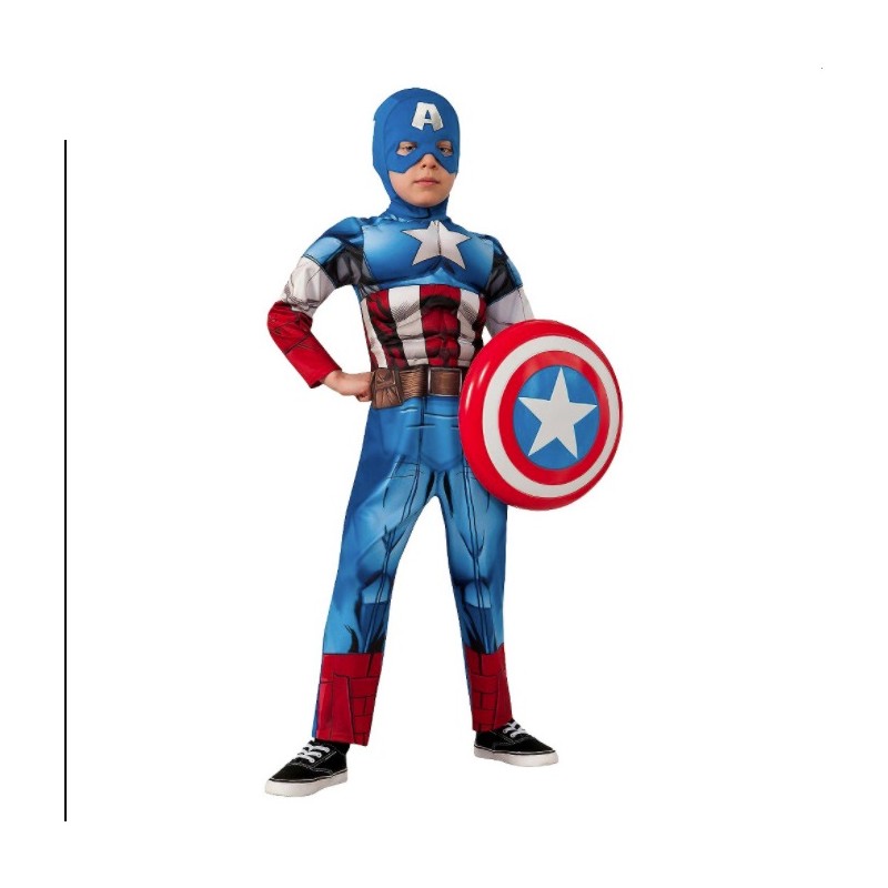 COSTUME CAPITAN AMERICA PREMIUM CON MUSCOLI TG 8 10 ANNI