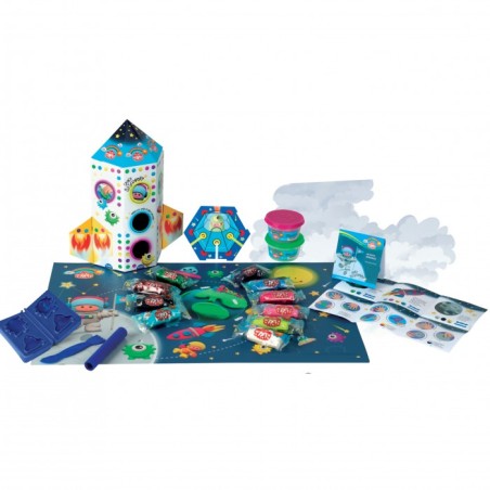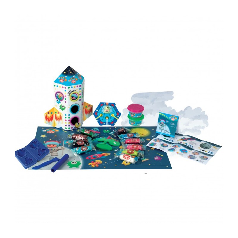 Un packaging d impatto che si trasforma in un razzo grazie alle ali da montare con un ricco contenuto di pasta per giocare Didò per modellare i propri compagni di viaggio spaziale