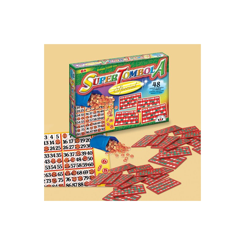 ART 93 SUPER TOMBOLA SPECIAL 48 cartelle in plastica Segnapunti scorrevoli da applicare Misura scatola 40 x 32 x 5 5 cm