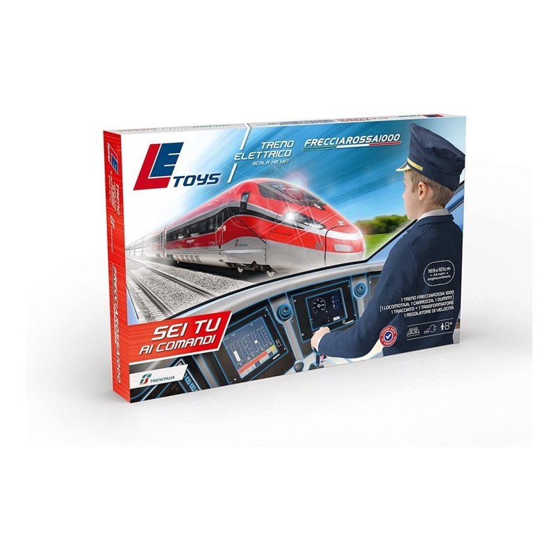 Specifiche Tecniche funzionamento a batteria 4 pile AA non incluse circuito lungo mt 4 80 3ANNI CONTENUTO 1 MOTRICE FRECCIAROSSA 1000 1 TRACCIATO DI BINARI OVALE 10 DRITTI E 16 CURVI 7 PALI CATE