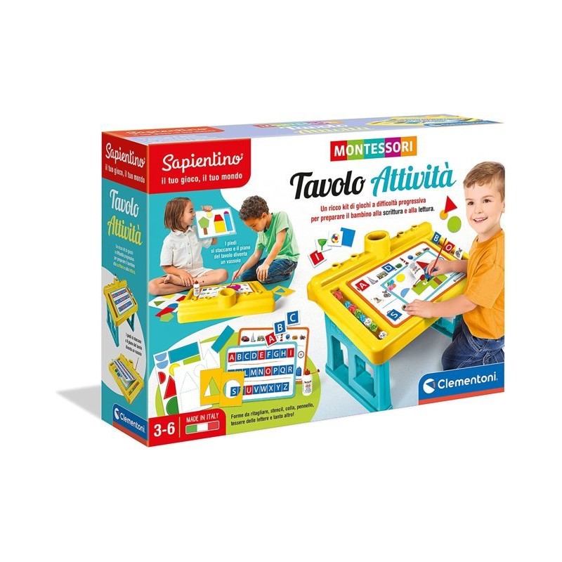 Un tavolino Montessori con tante attività progressive per imparare a ritagliare incollare e conoscere lettere numeri e forme attraverso la sperimentazione pratica Appallottolando i foglietti in dotazione il bambino potrà riempire dei disegni e le sagome di lettere e numeri analizzandone così le forme Con l aiuto delle forbici potrà sviluppare la manualità fine e la coordinazione oculo manuale divertendosi a ritagliare strisce spirali forme geometriche lettere e numeri Con la colla e il pennello le forme ritagliate possono essere incollate su diversi cartoncini con le loro sagome Il bambino sviluppa così anche la capacità di associazione E per stimolare la creatività ogni forma può essere utilizzata per comporre paesaggi e scenari La confezione contiene anche una guida illustrata per il corretto uso dei materiali e tanti utili consigli per giocare educare nel rispetto della naturale predisposizione del bambino all apprendimento Un gioco educativo Sapientino che unisce ai contenuti educativi di sempre la tipicità del metodo montessoriano Consigliato per bambini a partire dai 3 anni Made in Italy