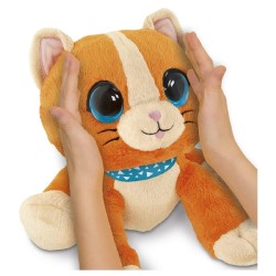 Peluche interattivo Chicco a forma di dolce e soffice GattoGioco interattivo del cuculo quando ti copri gli occhi il gatto emette suoni reali come se fosse triste o spaventato poi quando riporti le mani ad essere felice esprimendolo con suoni e versiQuando avvicini un pesce alla bocca del gattino questo lo mangiaQuando lavi o accarezzi la testa di un pony emette suoni di felicitàInclude 2 accessori una carota e una spazzola di plastica