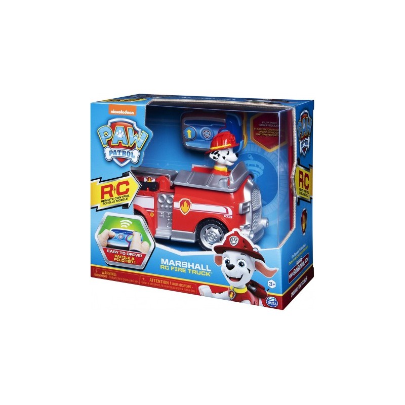 CAMION dei POMPIERI di MARSHALL RADIOCOMANDATO con dettagli autentici scala allungabile e Marshall al posto di guida questo veicolo radiocomandato è pronto per tante missioni di salvataggio PRATICO RADIOCOMANDO con DUE PULSANTI il veicolo è facile da guidare grazie al radiocomando Pup Pad a due pulsanti Usa il sinistro per guidare in avanti e il destro per fare retromarcia o girare PARTI con MARSHALL i bambini possono usare l immaginazione per ricreare le scene del famoso cartone animato e svolgere nuove missioni di salvataggio con il loro cucciolo PAW Patrol preferito Un regalo perfetto per i bambini dai 3 anni in su Richiede 3 pile AAA per il veicolo e 2 pile AAA per il radiocomando non incluse Include 1 camion dei pompieri radiocomandato di Marshall 1 radiocomando Pup Pad 1 guida per l uso