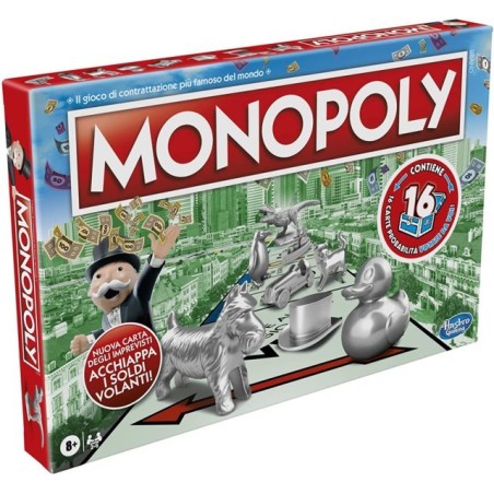 Monopoly il gioco di contrattazione più famoso del mondo Scopo del gioco è restare l ultimo finanziere in partita dopo che tutti gli altri hanno fatto bancarotta Al proprio turno ogni giocatore lancia i dadi e si avventura sul tabellone fra l acquisto di terreni stazioni o società le sorprese rappresentate dalle carte degli imprevisti e delle probabilità e il rassicurante ritiro dello stipendio ogni volta che si passa dal VIA Chi riesce ad amministrare al meglio le proprie finanze bilanciando gli investimenti vince la partita