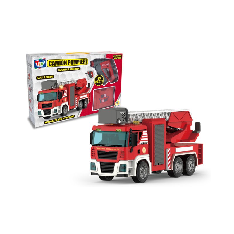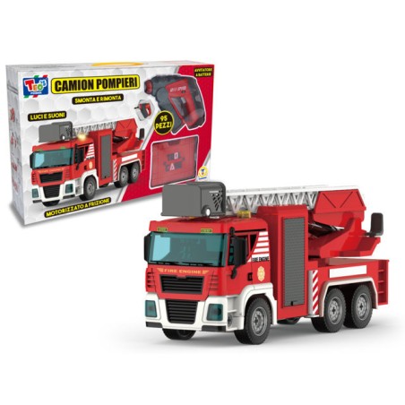 CAMION DEI POMPIERI CON TRAPANO LUCI E SUONI 95 PEZZI