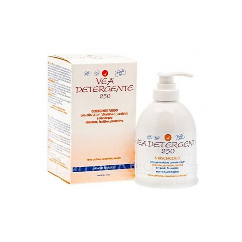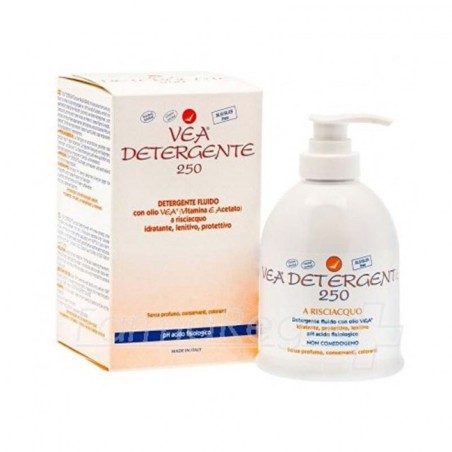 Detergente di nuova concezione poiché contiene un solo tensioattivo non ionico di esclusiva origine vegetale delicato e ad altissima tollerabilità associato all olio VEA vitamina E acetato allo stato puro in percentuale elevata con effetto idratante protettivo e lenitivo del prurito