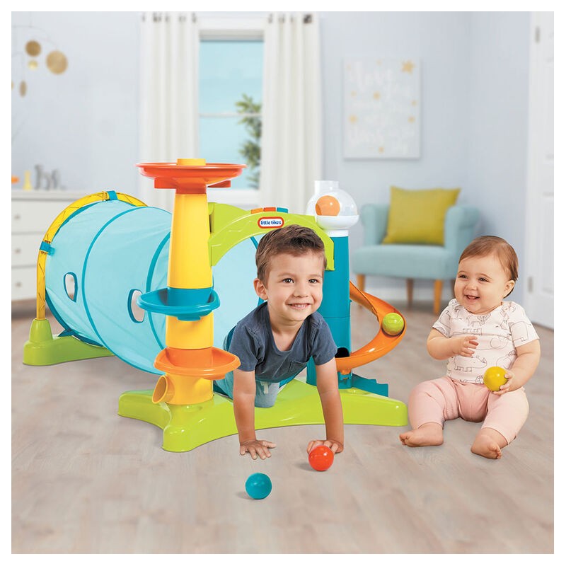 DUE MODI DI GIOCARE Striscia attraverso il morbido tunnel o divertiti a giocare con la palla con le palline a spirale Due bambini possono anche giocare contemporaneamente