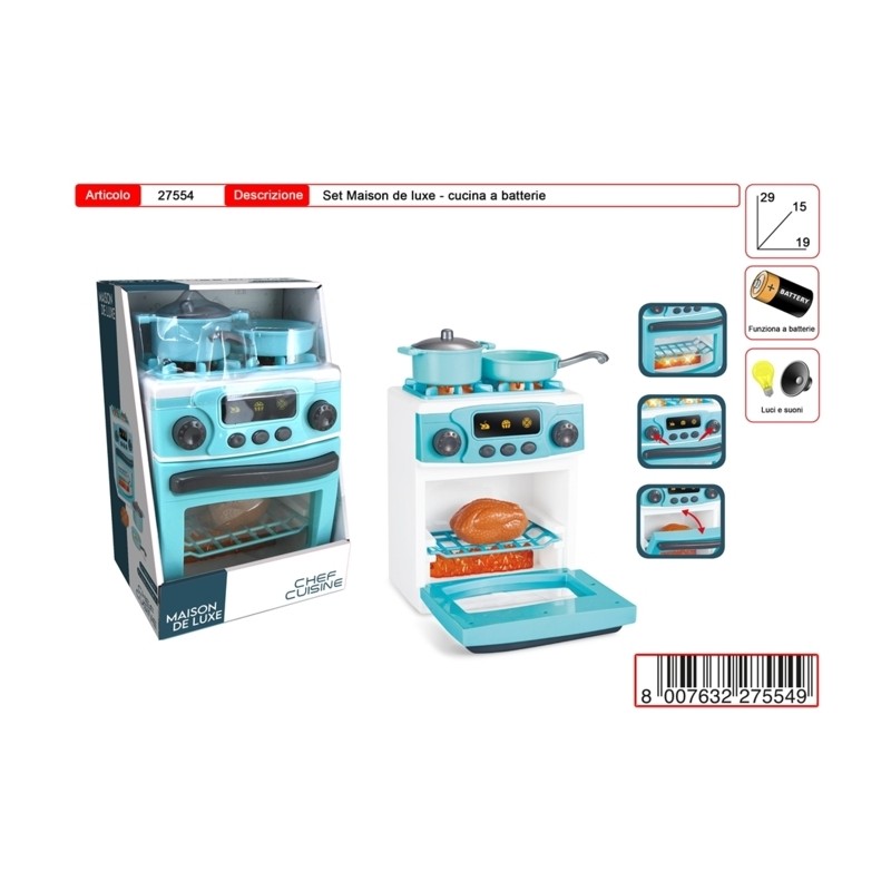 Maison de Luxe Chef cuisine Maison de Luxe Chef cuisine Giocattolo di qualità prodotto in materiale certificato Divertimento assicurato per tutti Con luci e suoni Giocattolo a batterie Altezza 29c