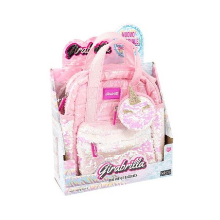 Dolcissimo zainetto rivestito di tessuto rosa morbido cangiante e tasche di paillettes dai colori scintillanti che cambiano colore quando le accarezzi Il portamonete richiama lo stile unicorno ed ha il moschettone per attaccarlo dove vuoi Le 3 tasche esterne possono contenere i tuoi oggetti preferiti le due laterali sono aperte per portare borracce o ombrellini e quella frontale è munita di chiusura a zip Lo scomparto principale è dotato di chiusura a cerniera e può contenere al suo interno diversi oggetti tra cui agende blocco degli appunti penne portafoglio accessori e molto altro Nella parte superiore sono cucite due pratiche maniglie in tessuto rosa che rendono il mini zainetto trasportabile anche a mano E una sacca perfetta per il tempo libero per accompagnare bambini e ragazze nelle avventure quotidiane Carico massimo consigliato 5kg Dimensioni LxAxP 26 0cm x 25 0cm x 7 0cm Materiali e componenti sono sicuri nel rispetto delle normative EU e testate in laboratori italiani Età consigliata 6