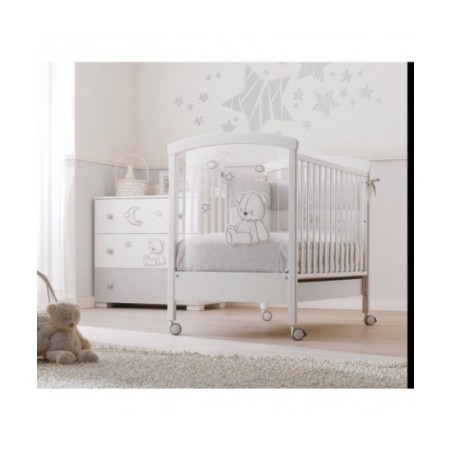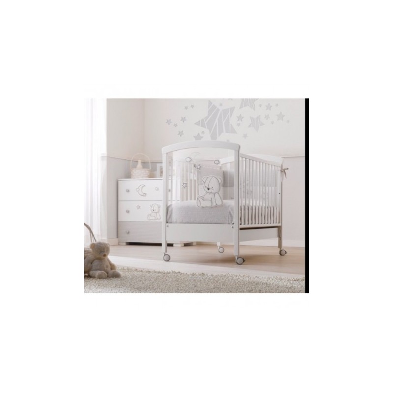 Funzionalità e sicurezza sono garantite dalla presenza di un ampio cassetto da quattro ruote piroettanti con gomma antitraccia di cui due con freno e da due sponde mobili del lettino azionabili con il sistema di movimento sicurbaby