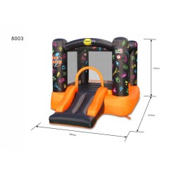 Kidz Rock terzo e ultimo modello di mini gonfiabili della linea interattiva HITME di Happy HOP dotato di salterello e scivolo a tema rock music per far scatenare i bambini che amano sia la musica che muoversi schiacciando i vari pulsanti che cambiano colore continuamente Dotato di 8 pulsanti che si possono inserire negli appositi spazi distribuiti sul gonfiabile