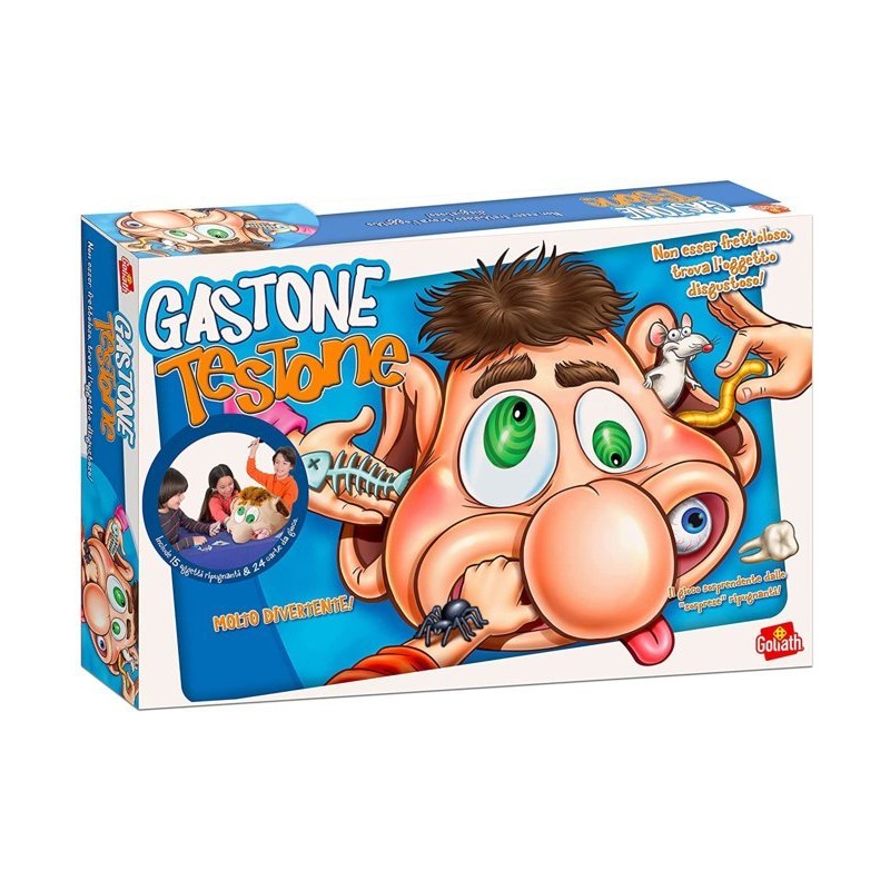 La confezione contiene 1 testa di Gastone 15 oggetti ripugnanti e 24 carte da gioco manuale di istruzioni