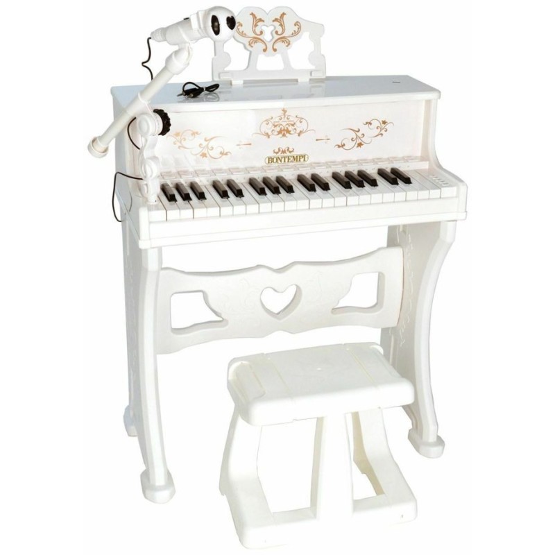 PIANOFORTE VERTICALE BIANCO 37 TASTI CON MICROFONO GAMBE E SGABELLO