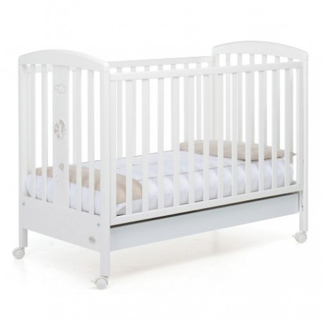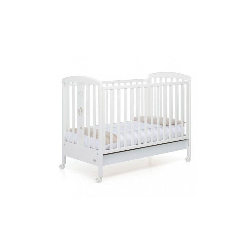 Il lettino in legno Babyfly di Foppapedretti ha una sponda regolabile a due altezze per facilitare il riordino del lettino e per consentire un pratico uso anche quando il bimbo è neonato