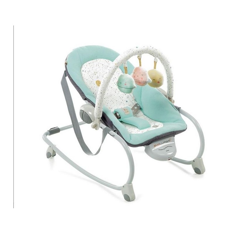 La nuova Sdraietta Evolution Jan ha la chiusura super compatta con poggiagambe e schienale multiposizioni per dormire riposare e giocare