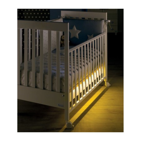 Un raffinato sistema di retro illuminazione che utilizza la moderna tecnologia LED permette di illuminare dolcemente la zona lettino ogni qualvolta ti avvicini ad esso per controllare il sonno del tuo bambino per mezzo di un sensore la zona lettino si illumina quando la stanza è immersa nel buio basta avvicinarsi nel raggio di pochi metri ed una morbida luce calda ti permetterà di controllare il sonno del tuo bambino