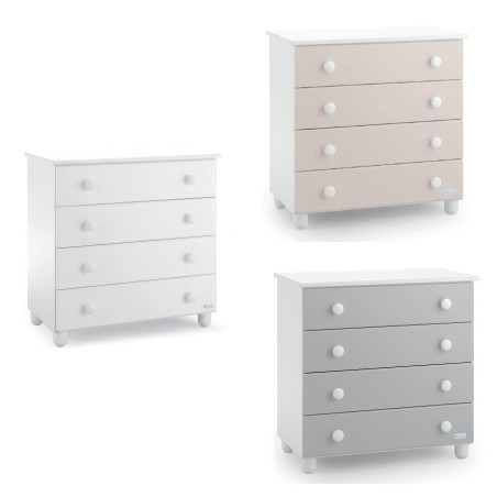 Comò con quattro capienti cassetti Può essere abbinato al Kit Piano fasciatoio Top Finiture colore Bianco Grigio Avana Decori senza decori Contact Art Cuore Stelle colorato Cuore Stelle grigio Dolcemiele Fun Classico bianco avana Fun Classico tortora avorio Fun Diamonds grigio bianco Fun Diamonds tortora avorio Funky bianco Funky grigio Funky avana Mars Miele Pregio bianco Pregio bianco antico Pregio bianco shabby Pregio avorio Pregio noce antico Pregio gold Star Starlette Web Misure cm 91x50x90 h