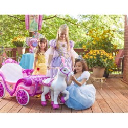Questa abbagliante carrozza reale è disegnata ad arte con la grafica delle loro principesse Disney preferite Belle Cenerentola Rapunzel Jasmine Auro