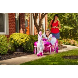 Questa abbagliante carrozza reale è disegnata ad arte con la grafica delle loro principesse Disney preferite Belle Cenerentola Rapunzel Jasmine Aurora e Tiana