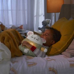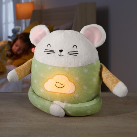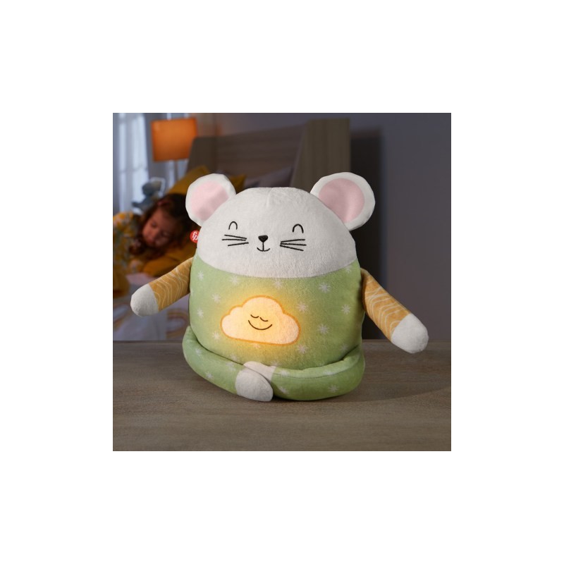 Il Topino Meditazione e Realx da Fisher Price introduce i bambini alla meditazione guidata con istruzioni di postura ed esercizi di respirazione aiutandoli a rilassarsi durante il giorno e prima di andare a nanna Questo morbido peluche è il compagno di coccole ideale per aiutare il tuo piccolo a imparare a rilassarsi Scegli tra 3 modalità di rilassamento una sessione relax diurna suoni calmanti per la notte e un esercizio di distensione diviso in 3 parti per la nanna Pronto per rilassarsi insieme al tuo piccolo questo soffice amico ha il viso ricamato ed è realizzato con una varietà di morbidi tessuti satinati tra cui un tenero pigiamino