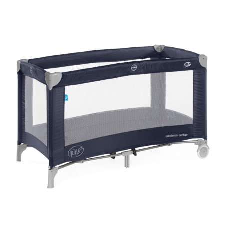 Il lettino da viaggio per bambini Basic è pieghevole e incorpora ruote per un facile trasporto