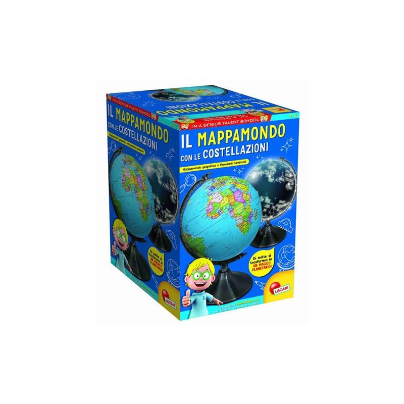 Questo globo non è solo un elegante e dettagliato mappamondo geografico Quando la luce scompare grazie alla speciale fotocellula si trasforma in un fantastico planetario luminoso con stelle e costellazioni Diventa così un prezioso oggetto d arredamento realizzato con materiali di altissima qualità Età da 6 anni
