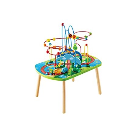 Esplora la giungla e i suoi animali con questo tavolo a misura di bambino guida il treno attraverso gli archi e fai volare gli uccelli tuttavia fai attenzione alle scimmie dispettose che cercano di