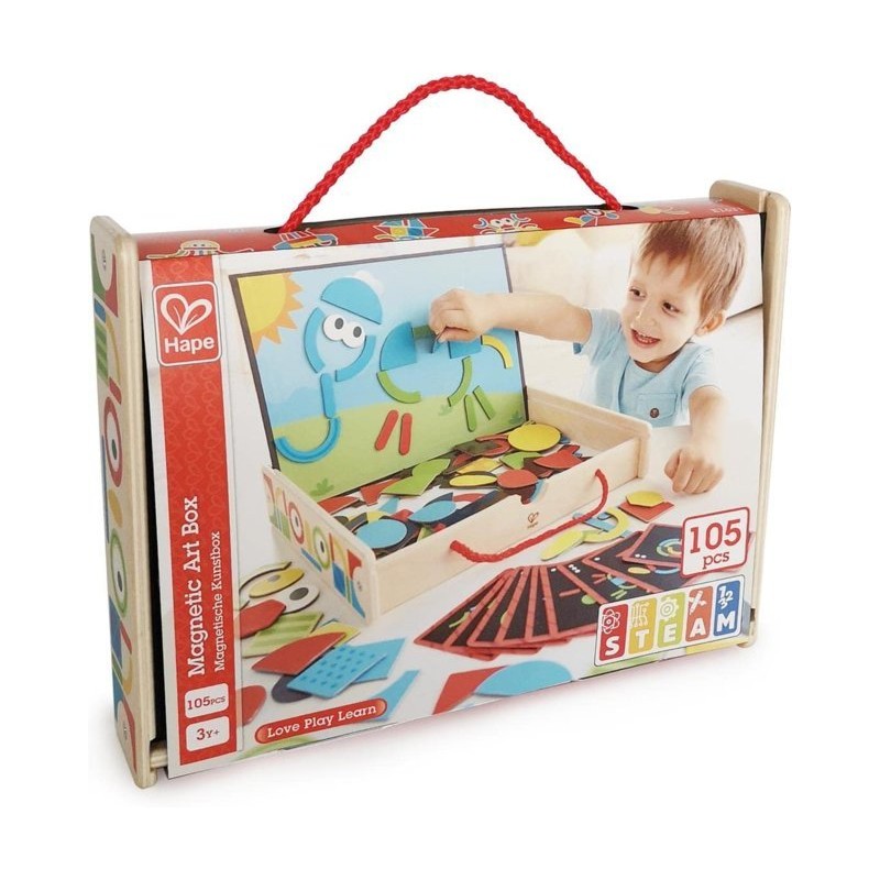 Scatola di legno con 91 forme magnetiche 12 biglietti d ispirazione con 24 motivi facile e veloce da imballare