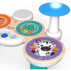 La batteria intelligente Magic Touch è un giocattolo elettronico del marchio Hape per il risveglio musicale dei bambini a partire dai 6 mesi Questo strumento musicale in legno e plastica è dotato di