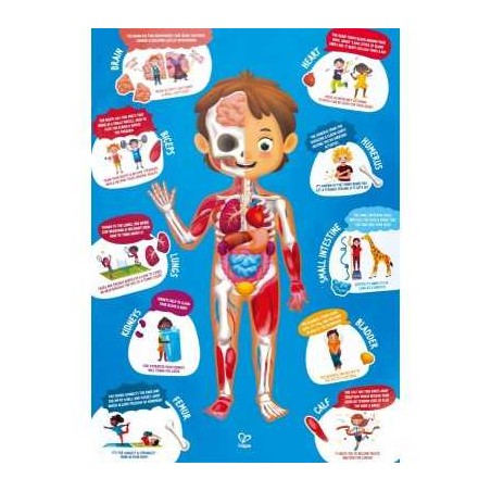 PUZZLE GIGANTE Le dimensioni generose del puzzle 100x50 cm permettono ai bambini di osservare meglio i dettagli anatomici e comprendere la complessità del corpo umano in modo chiaro e coinvolgente
