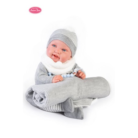BAMBOLA REBORN PIPO CON TUTA GRIGIA CM 42