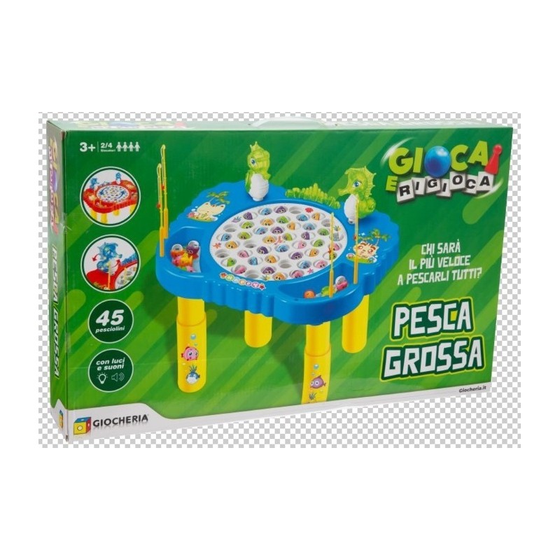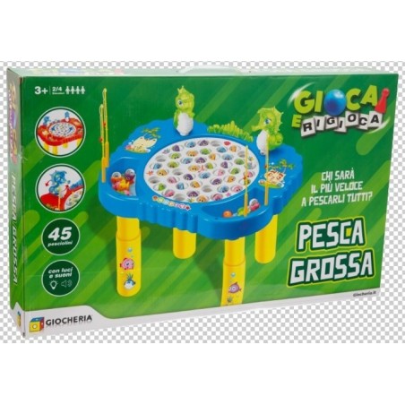 Base di gioco del classico pesca pesci in una versione a tavolino con luci e suoni Include tavolino con base di gioco ed elementi decorativi 45 pesciolini e 4 canne da pesca Num Giocatori 2 4