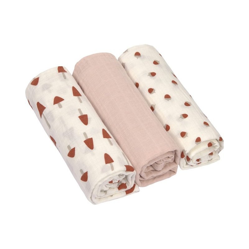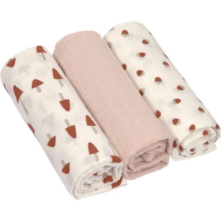 MUSSOLA 85X85CM 3 PZ PER CONF LITTLE FOREST POWDER PINK