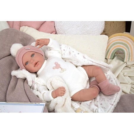 Bambola Reborn Arias 45 cm ONA C coperta con meccanismo a spirale