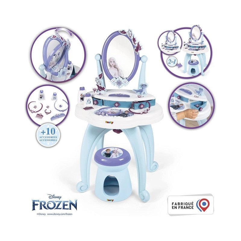 Potrai sederti sul comodo sgabello portata max 50Kg e passare ore ed ore a specchiarti e farti bella grazie ai 10 accessori inclusi tra cui una collana un pettine un cerchietto tre anelli un bracciale e due flaconi