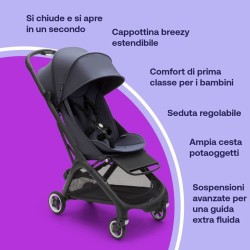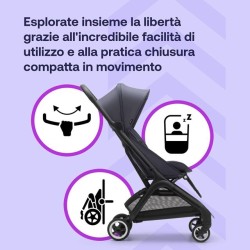 Si chiude e apre in un secondo Bugaboo Butterfly è un passeggino da viaggio ultracompatto con un sistema di chiusura intuitivo che permette di traspostarlo e piegarlo una sola mano