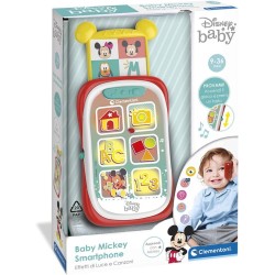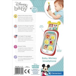 Questo divertente telefono giocattolo di Disney Baby Mickey davvero smart è un centro attività con 6 tasti interattivi che si illuminano Lo smartphone di topolino è educativo e interattivo insegna le prime lettere i numeri forme e colori con la voce originale di Mickey e attraverso dolci canzoncine e filastrocche Favorisce lo sviluppo del linguaggio e stimola la manualità la percezione visiva e uditiva il gioco imitativo e la comprensione della relazione causa effetto Proprio come un telefono da grandi il bambino potrà divertirsi ad imitare la mamma o il papà giocando a fare chiamate e divertendosi con il touchscreen e i simpatici giochi di luce Gli effetti luminosi e le divertenti illustrazioni attirano l attenzione del bambino e lo intrattengono La dimensione del telefono è in linea con le mani piccole dei bambini ed i pulsanti sono grandi Grazie alle batterie incluse il gioco può iniziare subito Un classico gioco di imitazione con gli intramontabili personaggi Disney sempre amati dai più piccoli Un gioco elettronico prima infanzia consigliato dai 9 ai 36 mesi