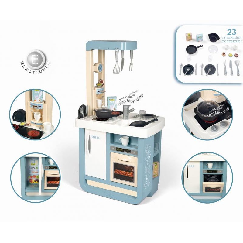 Cucina dal design moderno con tante funzioni Modulo elettronico Forno frigorifero lavello macchina per il caffè Include 23 accessori Altezza del piano di gioco 48 5 cm Funziona con una batte
